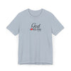 Soft, breathable, and quietly faith-filled. This lightweight jersey tee carries a simple message — God loves you — in an elegant script with a small red heart that feels like a private reminder you can wear all day. The retail fit drapes easily for layering or standing alone. It settles into your routine: worn to morning coffee, tucked into jeans for a community gathering, or slipped on after Sunday service as a calm, confident statement of hope. The fabric is airy and comfortable, and the crew neckline keeps the look neat and approachable. This shirt reads like a gentle invitation rather than a proclamation — familiar, warm, and effortless.