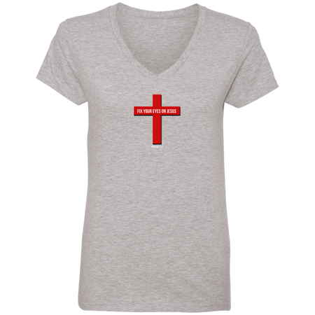 Fix Your Eyes on Jesus Ladies V Neck Tee Shirt