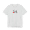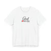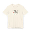 Soft, breathable, and quietly faith-filled. This lightweight jersey tee carries a simple message — God loves you — in an elegant script with a small red heart that feels like a private reminder you can wear all day. The retail fit drapes easily for layering or standing alone. It settles into your routine: worn to morning coffee, tucked into jeans for a community gathering, or slipped on after Sunday service as a calm, confident statement of hope. The fabric is airy and comfortable, and the crew neckline keeps the look neat and approachable. This shirt reads like a gentle invitation rather than a proclamation — familiar, warm, and effortless.
