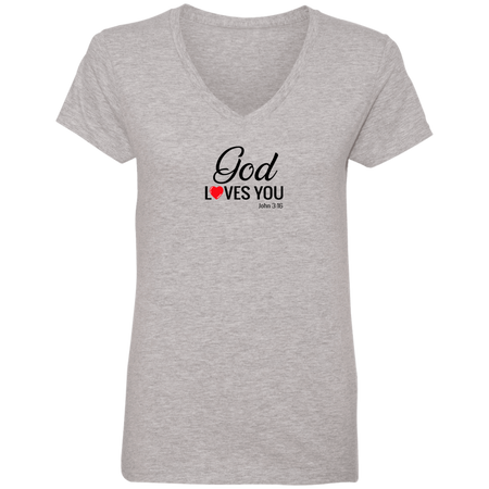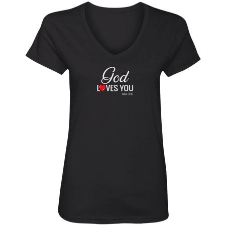 God Loves You Ladies V Neck Tee Shirt