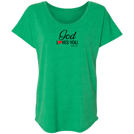 God Loves You Ladies Triblend Dolman Sleeve Tee