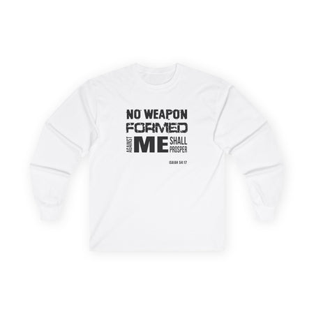 Quick Shop “No Weapon Formed Against Me Shall Prosper” Long Sleeve Tee Inspirational Christian Shirt from $23.95 Quick Shop