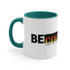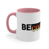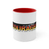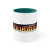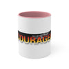 The personalized accent mug is exactly what mug merchants have been waiting for. With an array of color schemes (blue/white, green/white, red/white, and pink/white), these handled mugs give designers a wonderful canvas to work from. Any artwork is embellished relative to color schemes. The quality ceramic and printing can withstand machine washing.